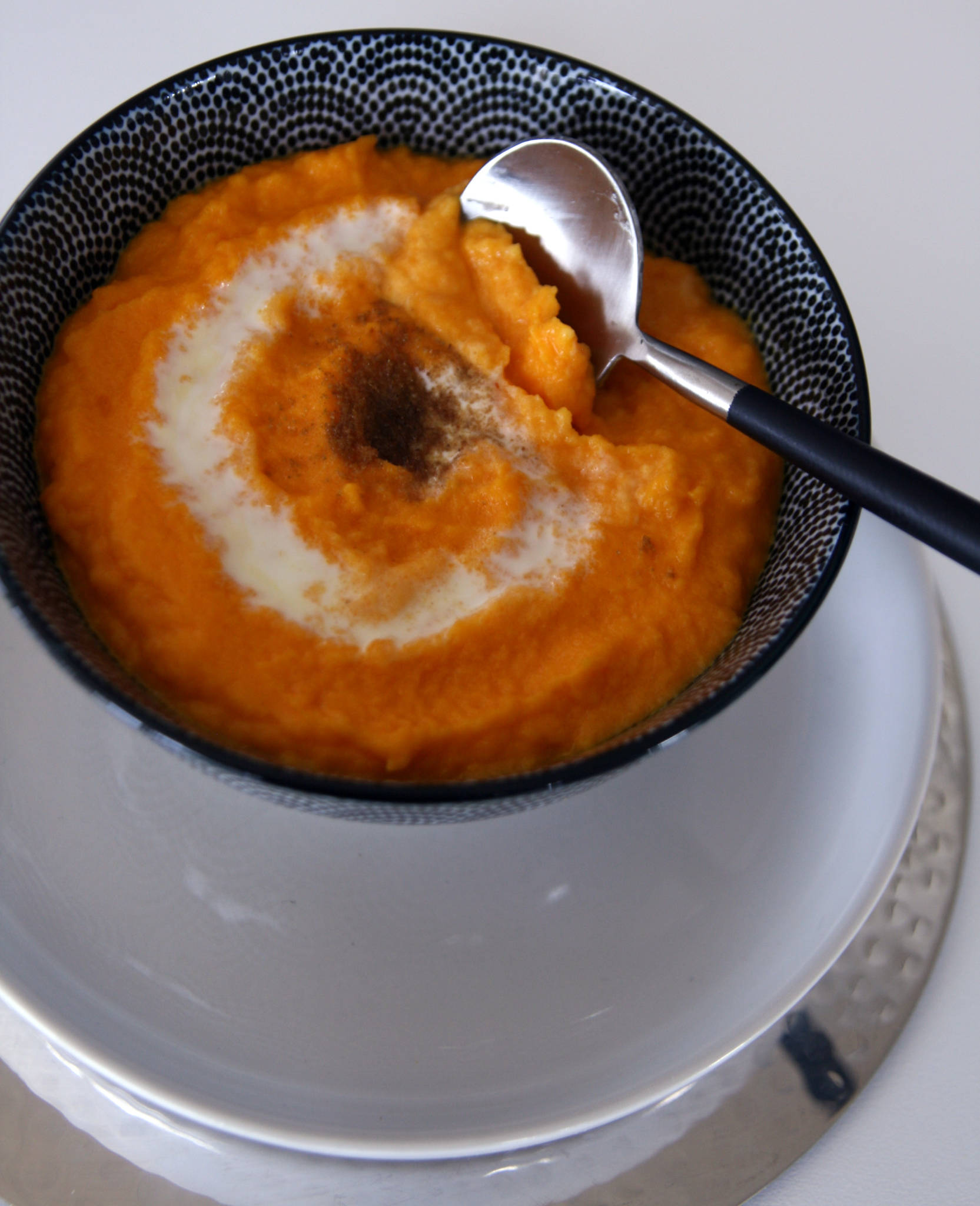 - A la fin du programme vapeur, retirer l'eau de la cuve. Y placer la lame MultiBlade et y verser les tronçons de carotte. Mixer à pleine puissance pendant 2 à 3 minutes : la purée doit être fine. Saler et assaisonner de cumin. Ajouter la crème liquide et mixer de nouveau.
